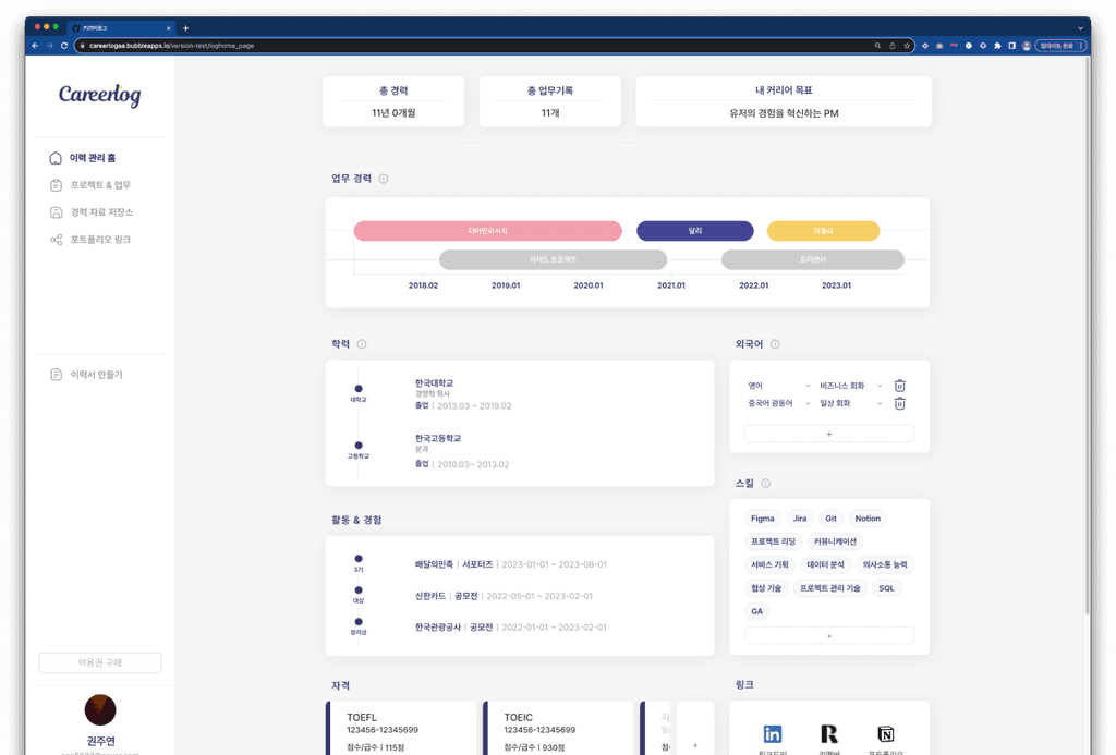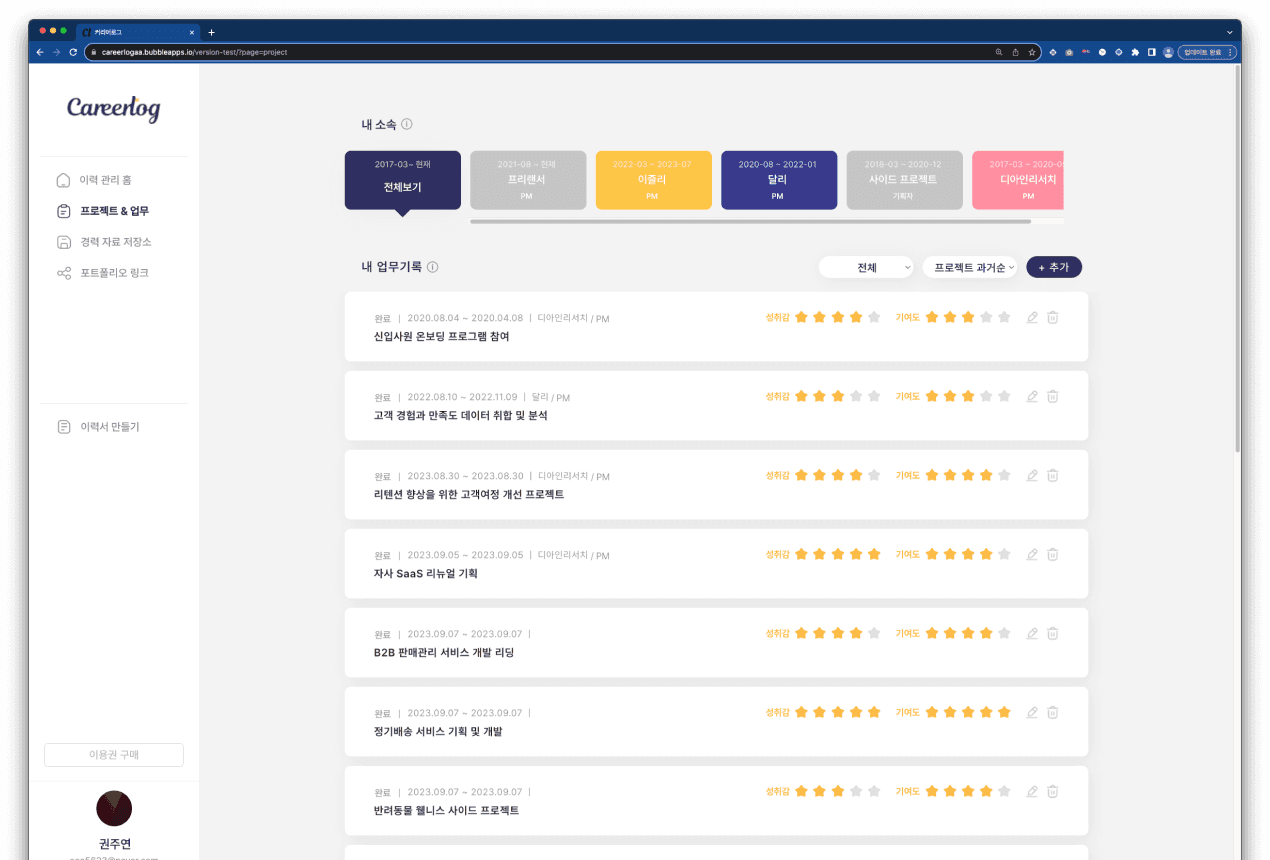 경력 데이터 및 코칭 기록을 '커리어로그' 서비스에 기록하고,