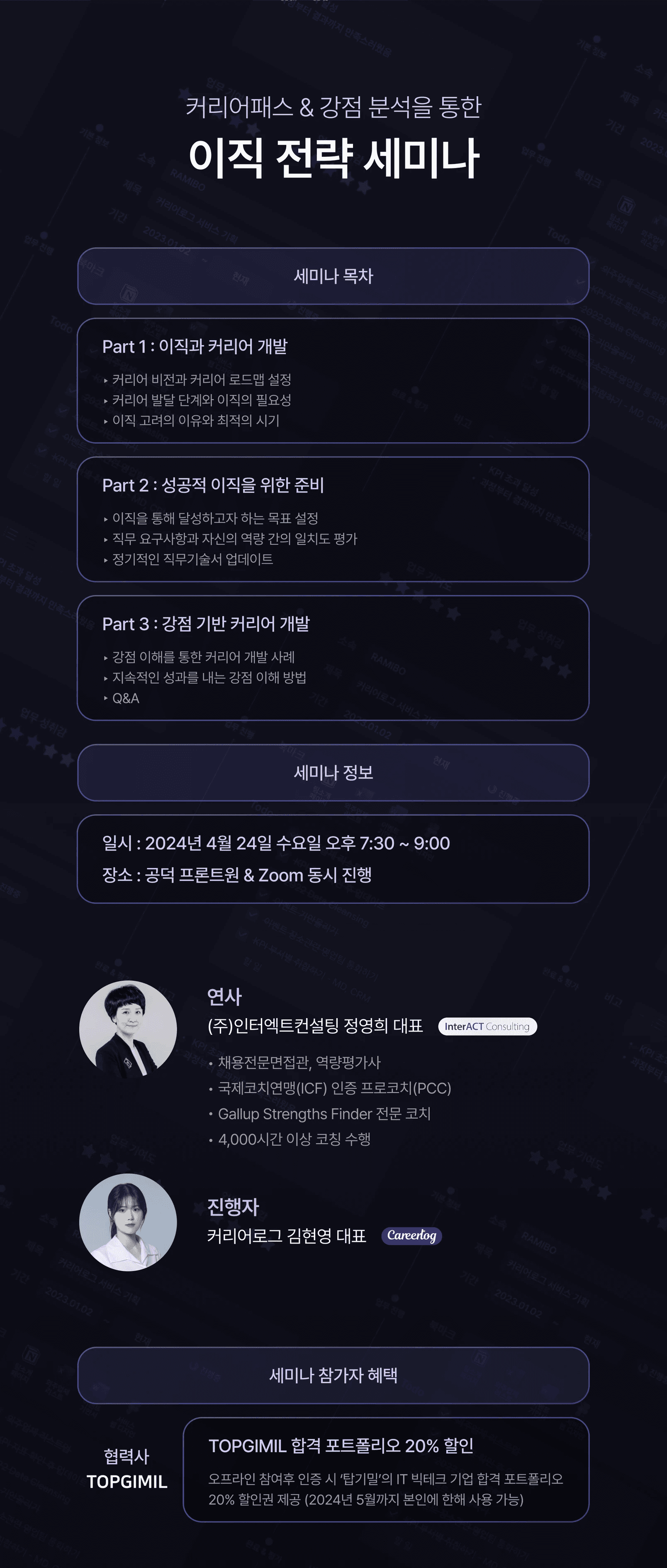 • 커리어 (비전설계, 경력관리, 커리어 로드맵, 이직과 심리관리)